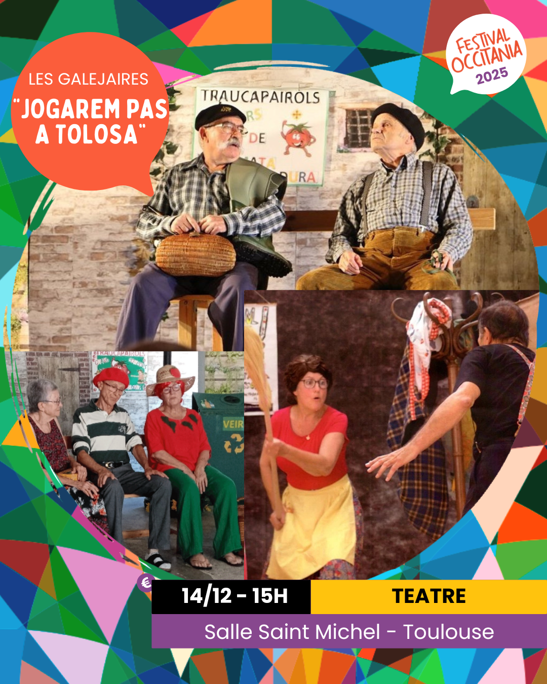 E òc, nous avons du reporter un événement : la pièce des Galejaires "Jogarem pas a Tolosa" se jouera bien à Toulouse ! Alors, on vous invite le dimanche 14 décembre à 15h à la Salle Saint-Michel à Toulouse pour clôturer définitivement cette édition 2025 !